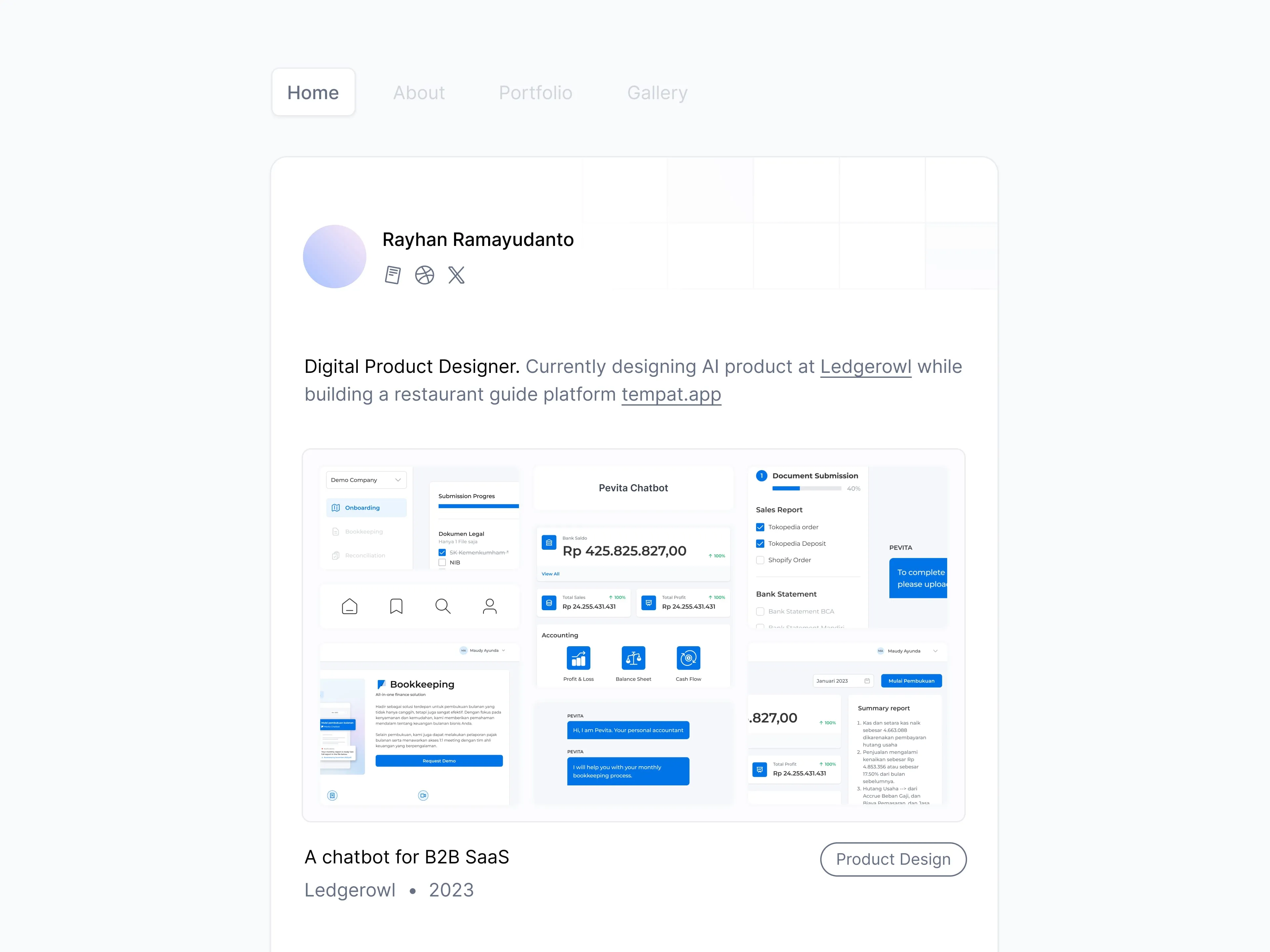 Digital Product Designer. Currently designing AI product at Ledgerowl while building a restaurant guide platform tempat.app